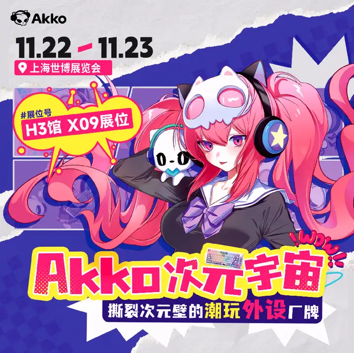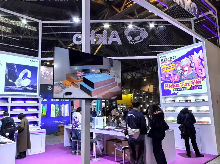 上海,2025年11月23日——亚洲专业桌面与外设文化盛会ZFX2025 Shanghai于上海世博展览馆H3馆圆满落幕。以“撕裂次元壁的潮玩科技厂牌”为核心理念的国际知名品牌Akko(艾酷)携全系重磅新品惊艳亮相X09展位,其融合职业级性能与二次元美学的产品矩阵,以及沉浸式互动体验,成为展会焦点,吸引数千名玩家与行业人士驻足体验。