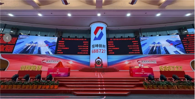 11月18日,建信信托旗下基金所投企业——厦门恒坤新材料科技股份有限公司(以下简称“恒坤新材”)在上海证券交易所科创板挂牌上市,股票代码SH688727。恒坤新材IPO发行价14.99元/股,上市首日开盘58元,收盘61.55元/股,涨幅310.61%,体现了资本市场对其技术实力与行业前景的高度认可。