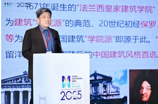在谈到如何将建筑之魅融入文化建设时,他提及中国传统建筑之魅是将中国传统文化融入到仿古建筑或现代建筑之中,体现古风、古韵。常院士以福州中洲岛为例,介绍了如何通过"三生"途径为败落的欧陆风建筑增魅。该项目通过拆除劣质楼体、保留并再生东区建筑群,并植入文化消费功能,再用天桥连接东西两区,实现了建筑与文化的共生。该项目用这样的方式彰显了建筑建设的魅力和欧洲古典文化的魅力。