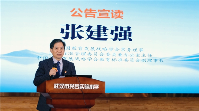 会上,中国教育发展战略学会团体标准管理委员会委员兼办公室主任、中国教育发展战略学会教育标准委员会副理事长张建强上台,宣读中国教育发展战略学会《中小学汉字书写数字化教学规范》团体标准公告。
