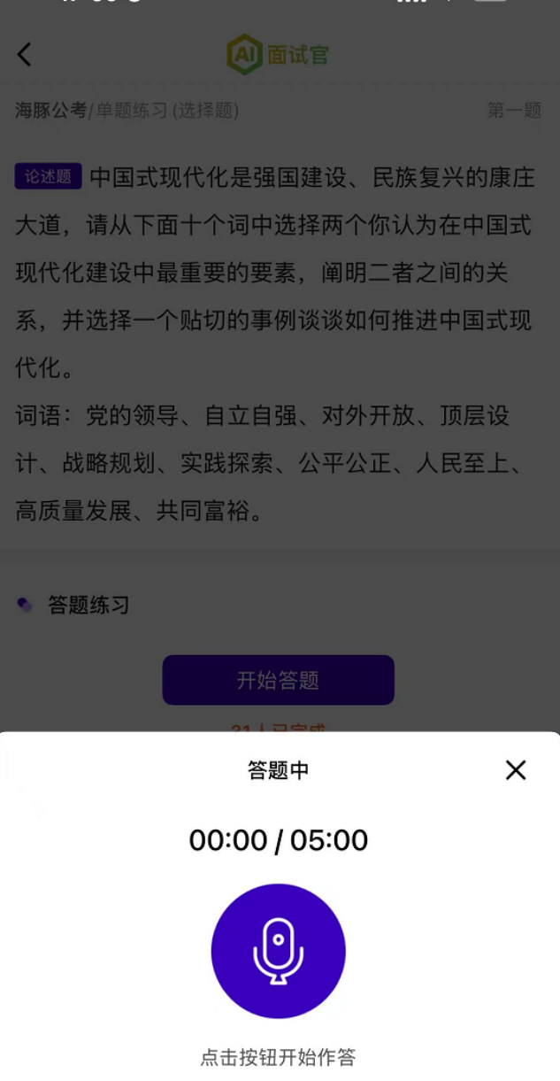 针对申论和面试等主观题型,AI大模型能够实现智能化批改,不仅给出分数,还能提供详细的改进建议。系统可以分析文章结构、逻辑性、语言表达和观点深度,指出具体问题并提供范文参考,帮助考生快速提升写作和表达能力。