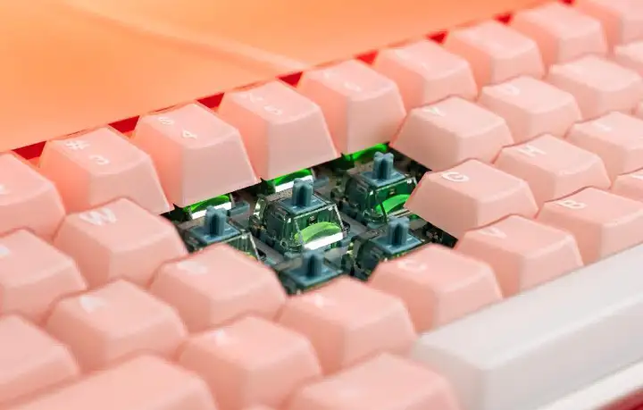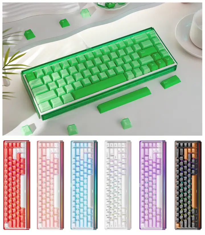 RAY68提供雾透纯白、雾透红白、雾透紫白、雾透粉白、雾透蓝白、雾透黑茶、雾透绿等多种潮流配色可供选择,满足不同玩家的桌搭需求,无论是简约风、电竞风还是二次元风格桌面,都能轻松融入并提升整体质感。