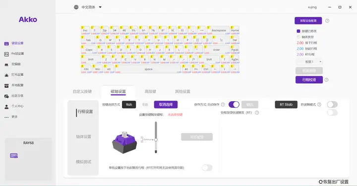 为满足玩家个性化需求,RAY68支持在线与离线双端驱动设置,无论是按键功能、灯光效果,都可根据个人喜好进行自定义调节。开放的定制空间让每一把键盘都能成为玩家的专属装备。