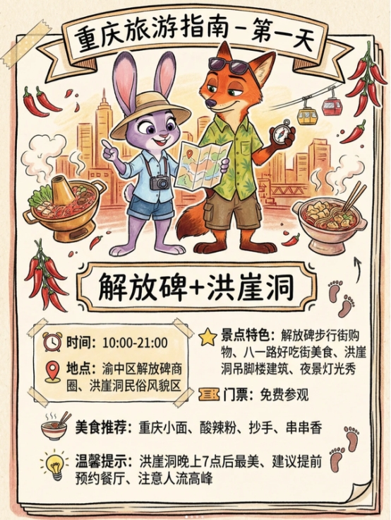 提示词:请用生成三天的哈尔滨的旅游指南 ,每一天一张图,手账形式,整体用朱迪狐尼克作为形象引导,纯中文,信息可以足够详细一点,比例3: 4,4k出图。