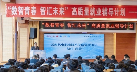 12月4日,“数智青春 智汇未来”高质量就业辅导计划——云南省就业推荐活动暨2025年云南省大学生“就业引航”宣讲活动在云南机电职业技术学院成功举办。本次活动由中国青年报社、共青团云南省委、云南省学生联合会主办,共青团云南机电职业技术学院委员会、苏州陆汇信息科技集团有限公司等单位承办,并得到昆明冶金高等专科学校、云南交通职业技术学院、云南林业职业技术学院等高校团委的支持。