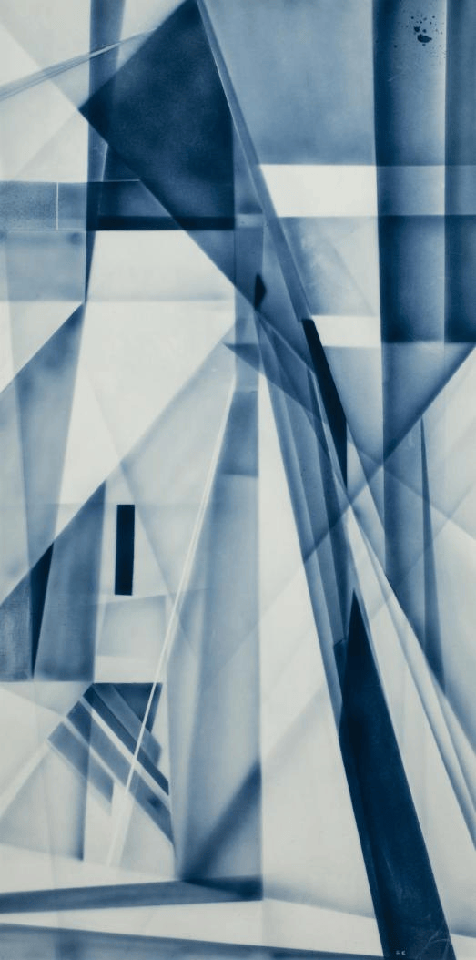 借助现代绘画语言形式作为参考从而引发的作品,对现代艺术的观念及表现形式吸收借鉴,突破传统青花的表现固化,试图挖掘出青花在当代语境下的各种可能性,胡婷(了了)的创作具有实验性及鲜活性。以她的作品《要有光》为例,这是以蓝白为主色调的抽象艺术作品,画面生青花铺成大量几何形狀(三角形、矩形等)相互重叠、交错构成,呈现出丰富的层次和光影变化,风格偏向构成主义。这种艺术形式可能意在探索形状、空间与视觉感知的关系。