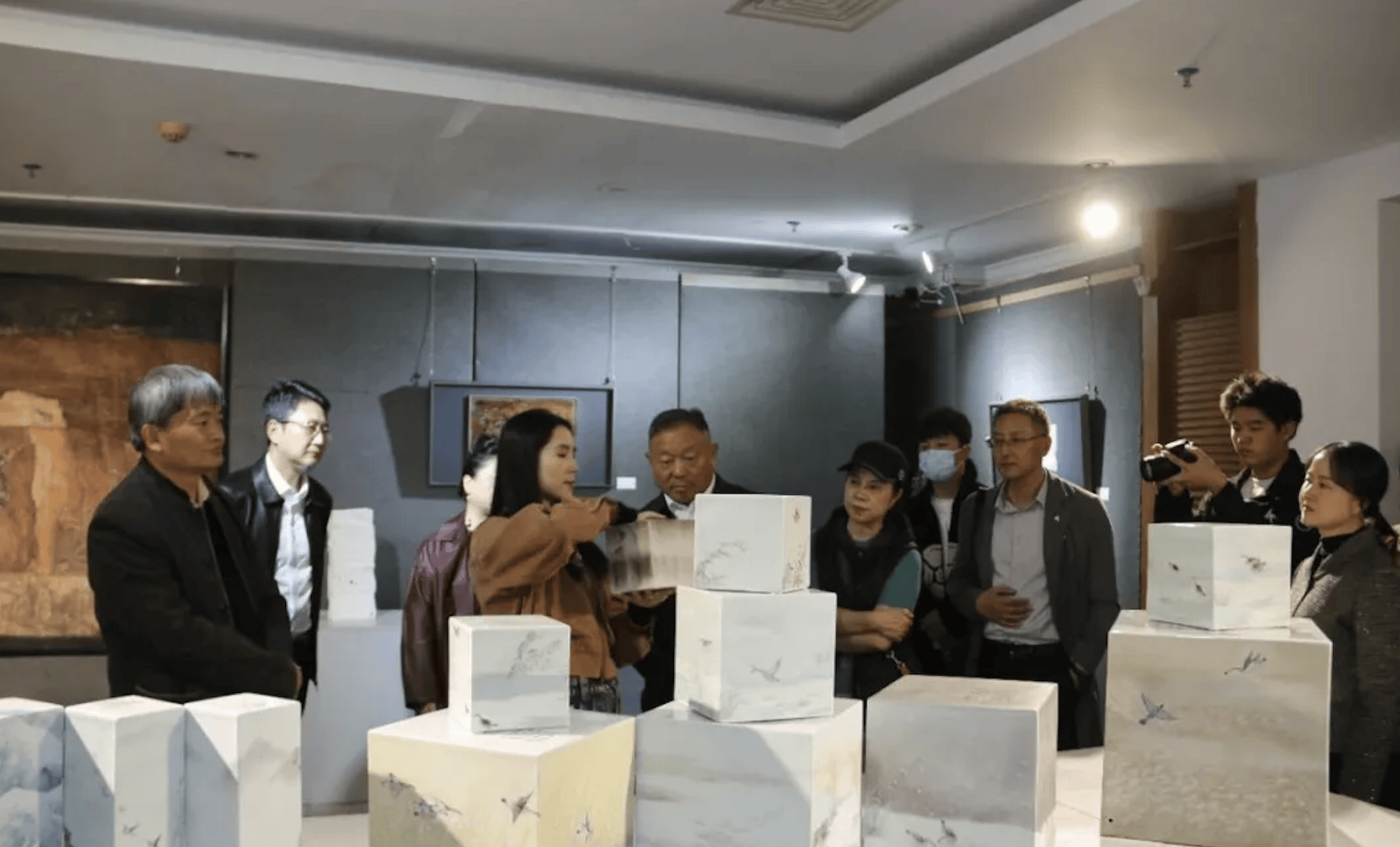 艺术家胡婷(了了)正在为参观嘉宾讲解作品创作故事
