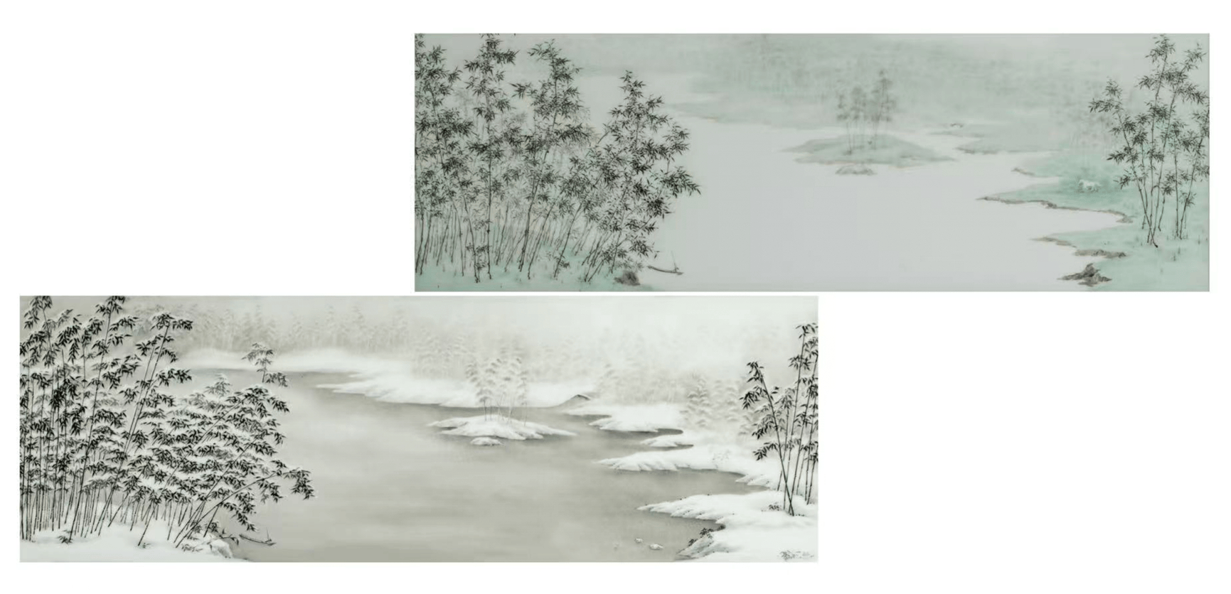 材质:新彩 作品名称:《非马之春》《非马之冬》 尺寸:76×26cm×2