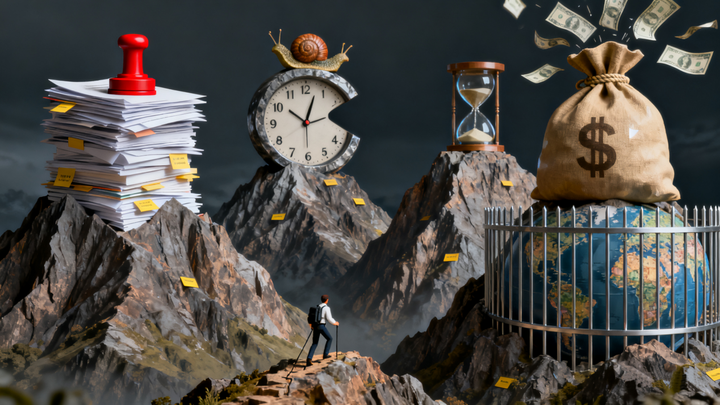 为什么明知有服务盲区,很多企业却选择“睁一只眼闭一只眼”?因为想要用传统方式覆盖全球,就得先翻越这“四座大山”: