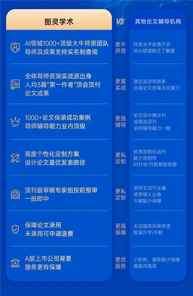 图灵学术提供的不仅仅是一篇论文的辅导,而是涵盖“选题、idea创新、实验设计、代码调优、写作辅导、润色修改、选刊预审、反修指导”直至最终录用的“全链路VIP服务”。