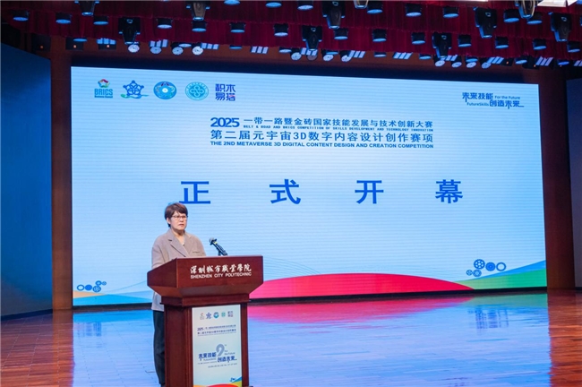 深圳城市职业学院(深圳技师学院)副校长朱爱群:搭建技艺切磋国际化舞台,确保赛事圆满举办深圳城市职业学院(深圳技师学院)副校长朱爱群代表大赛承办校发表致辞,朱校长首先代表深圳城市职业学院(深圳技师学院)欢迎领导、嘉宾和参赛队师生的到来,感谢组委会和合作单位。她指出,数字技术重塑世界格局,金砖国家持续深化技能发展与技术创新合作是应对时代挑战的关键,大赛聚焦元宇宙3D数字内容创作,既精准契合了数字经济需求,更是积极响应一带一路倡议,深化金砖国家之间技能交流与人才共享的生动实践。大赛为广大技能青年人才搭建展示才华、切磋技艺的国际化舞台,学校承诺将周密组织、完善保障和热情服务,确保赛事公平、有序、高效开展。预祝选手取得佳绩、大赛圆满成功。