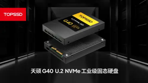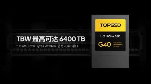 天硕 G40 U.2 NVMe 工业级固态硬盘以 最高 6400 TB 的 TBW 证明了它在工业级耐久度上的深厚实力,为长期运行环境提供更稳健、更放心的存储底座。如果您的系统需要可靠且持久的存储解决方案,天硕G40系列工业级SSD是值得信赖的选择。