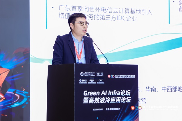 12月11日下午,在2025 Green AI Infra论坛暨高效液冷应用论坛上,浩云长盛工程建设副总裁张忆军以“重塑数字基石:绿色、集群与液冷驱动的数据中心革命”为题进行分享。他谈到,在数字经济与AI高速发展的背景下,数据中心正经历一场以“绿色、集群、液冷”为核心的技术变革。浩云长盛作为领先的智算中心解决方案提供商,业务已覆盖华北、华南、华西等关键区域,在北上广深及宁夏、成都等国家算力枢纽节点规划运营机柜规模超20万架,具备大规模集群化交付能力。