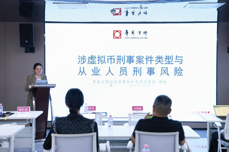 本次讲座特邀链熵科技有限公司副总经理万浩然,围绕涉虚拟货币案件的实务难点与解决路径进行分享。华商经辩委成员韩欣燕结合实践,解析了虚拟货币刑事案件的主要类型及从业人员面临的法律风险。