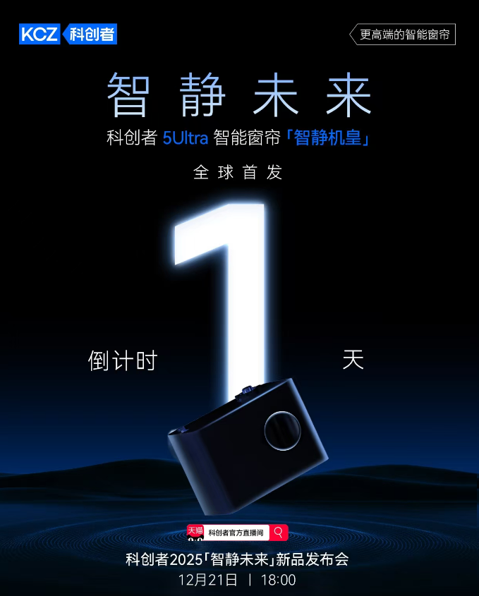 当智能家居行业还在比拼联网速度、功能集成和性价比时,一家成立7年的企业正试图用核心静音技术定义新的价值坐标。12月21日晚,科创者将在天猫直播间发布年度旗舰新品5Ultra。值得关注的是,这家凭借前瞻性创新多次带动行业革新的企业,已跻身国家电动窗帘行业标准参编单位,其新品也被视为掌握核心静音科技后的技术宣言。