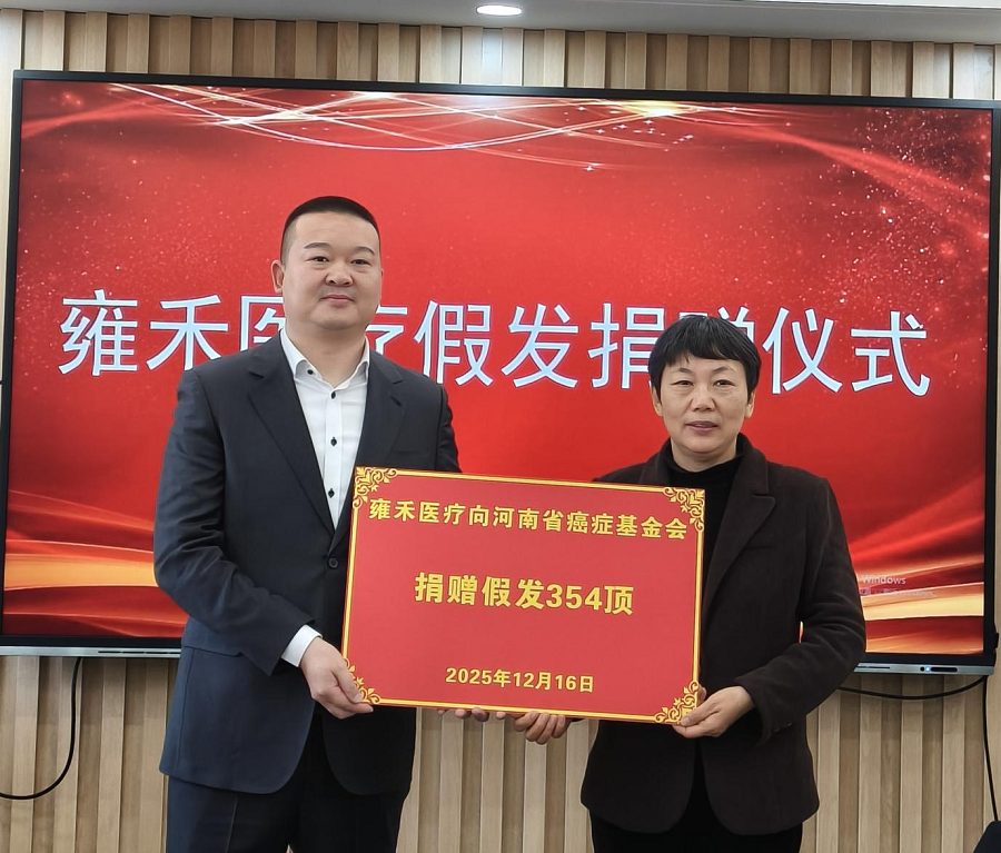 12月16日,雍禾医疗假发捐赠仪式在河南省癌症基金会举行,雍禾医疗集团向河南省癌症基金会捐赠价值241.5万的高品质假发,专项用于帮助河南地区因癌症治疗而导致脱发的女性患者。