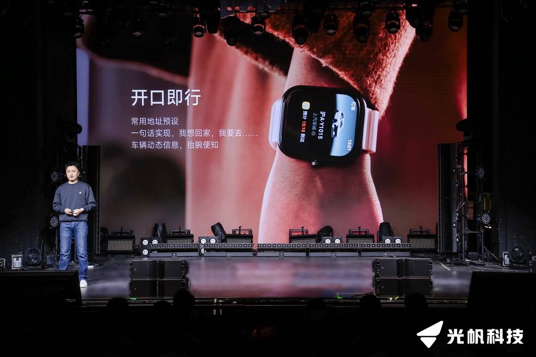 在发布会现场的功能演示中,光帆Lightwear展现了其在多场景下的主动服务能力,覆盖日程管理、消息智能提醒与转述、差旅机酒安排、出行叫车、餐厅推荐排队、商品比价购物等高频刚需场景。