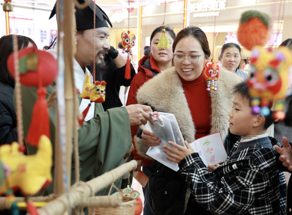 现场设置活动区,“八印绘金东·集章悦同行”成为热门项目,市民手持集章手册穿梭于各个点位。孩子们在雕版印刷体验区跟着非遗老师学拓印,大人们一边打卡一边交流集章攻略。图书展销区同样人气十足,文学、科普、绘本等书籍琳琅满目,7.5折的优惠吸引众多家庭驻足挑选。陈女士抱着选好的绘本笑道:“赶上促销,给孩子备点‘精神年货’”。