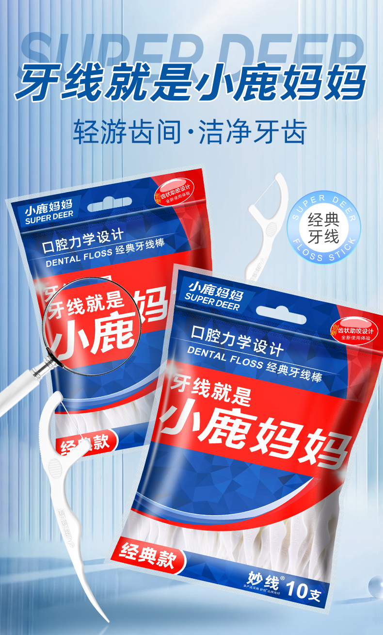 口腔护理的精致度,往往藏在牙缝的清洁细节里。普通清洁方式难以触及的间隙,正是牙菌斑与食物残留的藏身之处,而一款优质牙线,能让这份深层清洁变得轻松又安心。小鹿妈妈深耕口腔护理领域,以对用户需求的精准洞察和细节打磨,打造出适配多数人需求的牙线产品,成为日常护牙的得力伙伴。