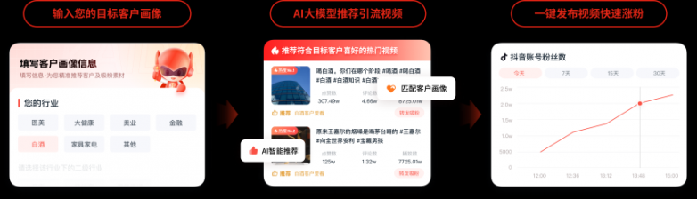 AI 大模型推荐适配客户画像的引流视频,一键转发即获海量曝光、高效吸粉;全行业视频模板搭配自定义编辑工具,降低创作门槛。支持多平台账号统一托管、一键批量发布,实时追踪涨粉动态与画像以灵活调策;搭配 DeepSeek AI 助手覆盖全场景,结合多渠道运营能力,助力品牌破圈与粉丝增长。