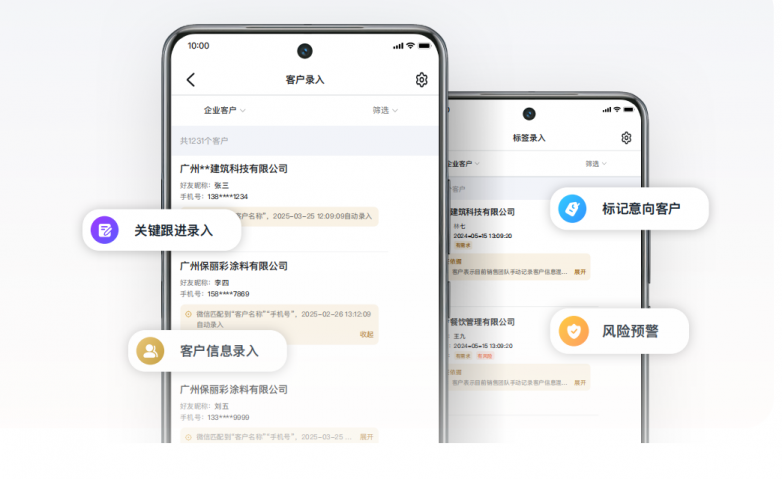 通过 “客户卫士” 功能沉淀与管理企业客户资产,支持智能录入客户资料、同步聊天信息,实现公司客户资产统一管理,保障员工离职后客户不流失。以获客效率底层逻辑重构为核心,破解企业客户资产运营中的增长瓶颈,为客户资产长期价值释放奠定基础。