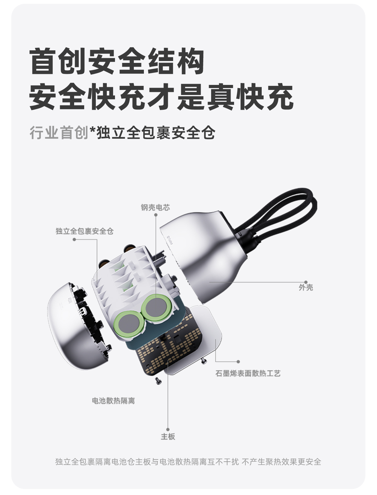 作为阿里优酷旗下AI硬件品牌,tudoo依托阿里生态供应链优势,将安全理念贯穿产品全生命周期。产品内置长虹三杰21700圆柱钢壳电芯,采用与新能源汽车同类型生产工艺,具备更高的结构稳定性与循环寿命,从核心部件层面保障续航不虚标、使用不鼓包。同时融入AI智能识别技术,可自动适配手机、耳机等不同设备的充电需求,切换快充与小电流模式,既保障充电效率又保护设备电池健康,实现安全与实用的有机统一。