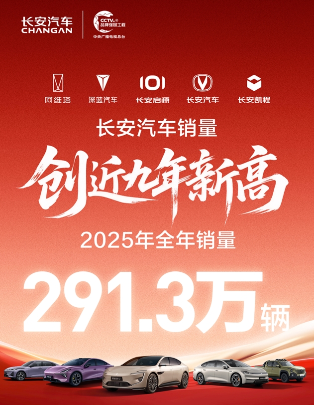 回首2025,长安汽车展现出了强劲的增长态势。长安汽车全年销量突破291.3万辆,创下近九年来的历史新高;新能源汽车年销量首破百万大关;海外市场再创佳绩。与此同时,随着“香格里拉”、“北斗天枢”、“海纳百川”三大计划的加速推进,长安汽车以坚定的战略定力,为中国汽车产业的高质量发展注入了澎湃的“长安动能”。