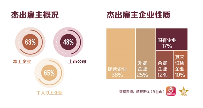 在获奖企业构成中,本土企业表现突出,民营企业占比36%,国有企业占17%,合计超半数,展现出国内企业管理水平的整体提升。外企与合资企业分别占25%和12%,仍保持较强竞争力。规模方面,千人以上企业占比超过65%,其中3000人以上大型企业达38%。值得注意的是,75%的获奖企业拥有海外业务,凸显出全球化背景下,杰出雇主积极拓展国际市场,并在人才管理上相应构建国际化配套能力,这一趋势也成为企业获奖的重要助力。