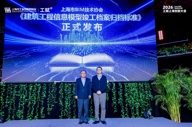 《建筑工程信息模型竣工档案归档标准》在上海市BIM技术协会的指导下,由浦东新区档案局、上海建工集团等单位编制,明确了竣工BIM模型的归档内容、范围与方法,兼顾城建档案存证、业主运维、企业数据资产等各方需求,实现BIM技术与档案管理的深度融合,为智慧城市数据底座建设提供标准支撑。会上,上海建工集团信息总监余芳强介绍了标准的整体情况,上海市BIM技术协会会长戴晓坚、浦东档案局局长武士民共同发布了这项重要的成果。