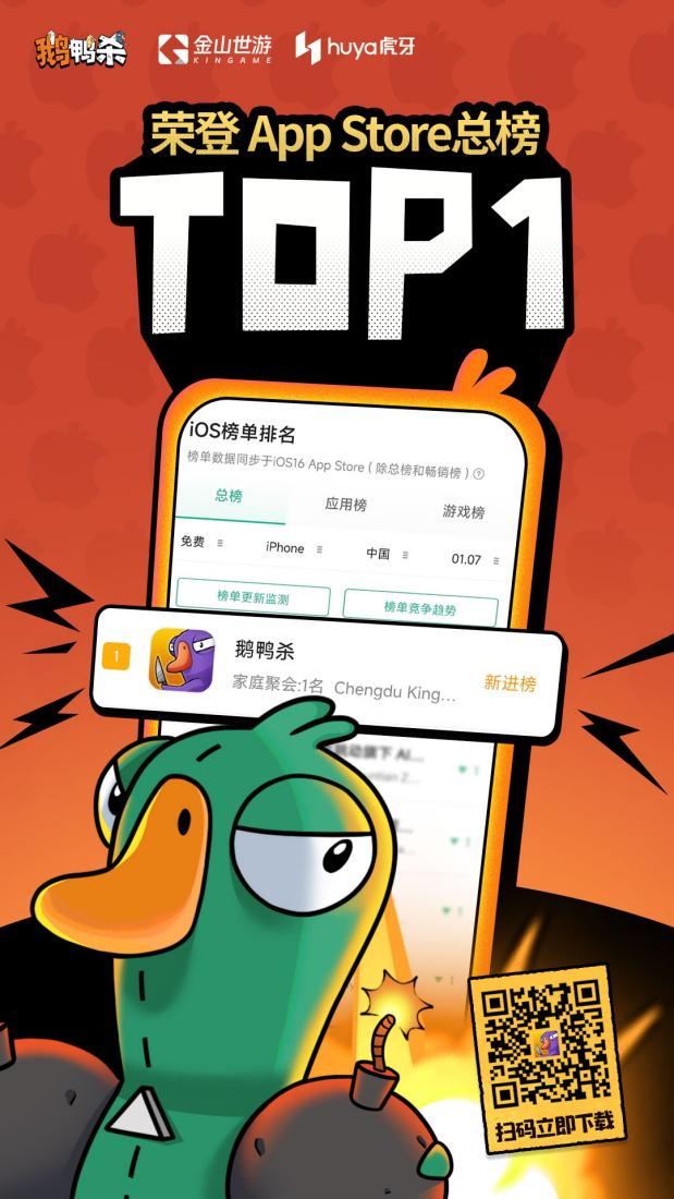 由金山世游和虎牙联合发行的社交推理手游《鹅鸭杀》自上线以来,迅速引爆全网。上线仅6日新增用户突破千万,同时最高在线人数(PCU)已超越Steam端历史峰值。累计斩获全网热搜近百个,并在多个主流平台登顶榜单TOP1。