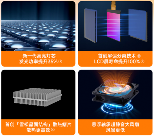 大眼橙的核心突破在于通过技术自研实现了1LCD方案的体验升级。其国家级专精特新"小巨人"实验室披露的数据显示,通过光学材料创新与结构优化,新一代1LCD光机亮度提升至350CVIA流明(较行业同级产品平均提升35%)。更关键的是,大眼橙首创的"屏偏分离技术"解决了1LCD长期存在的热衰减难题,使光机寿命较行业平均水平提升100%。