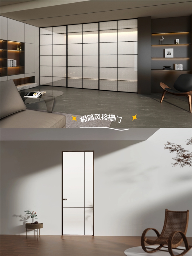 现代极简风可选极窄型材+细格栅,搭配同色系黑色五金与简约夹丝玻璃,线条利落,质感拉满;