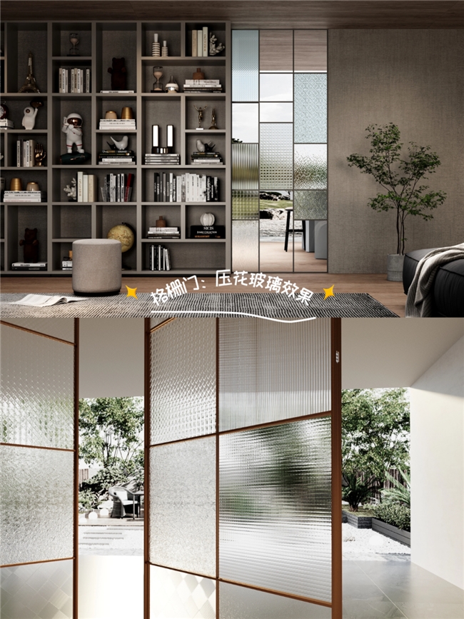 格栅门玻璃方面,也可以借助德立的定制服务实现丰富的选择,每款都能精准适配不同风格与需求,让格栅门不止实用更具设计感。