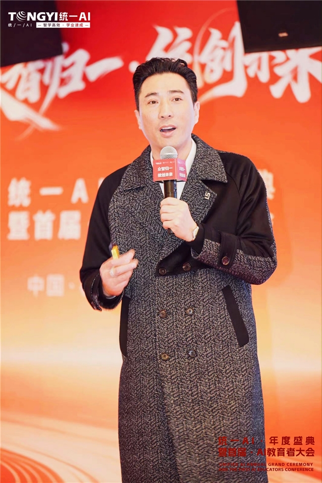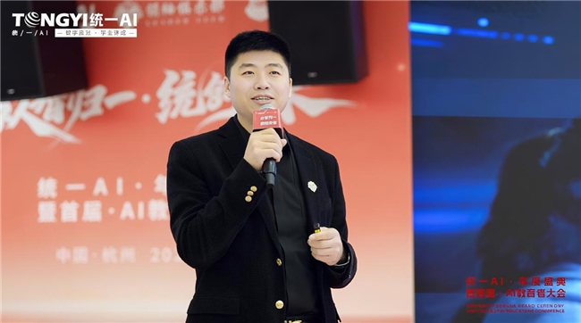 统一 AI 董事长张德春率先登台,深情回望 2025 年企业的成长征程与战略跃迁,向一路同行的伙伴们致以最真挚的谢意。他前瞻未来两年 “AI + 教育” 赛道的黄金机遇,系统阐释统一 AI 的核心竞争力、上市发展路径与生态教育平台建设蓝图,为全场注入笃定前行的磅礴信念。其间,其重磅新作《AI时代,孩子如何学》首次面世。张董事长娓娓道来创作本源,字里行间凝聚对AI教育事业的深刻洞见,彰显其深耕领域的远见卓识与坚实担当。