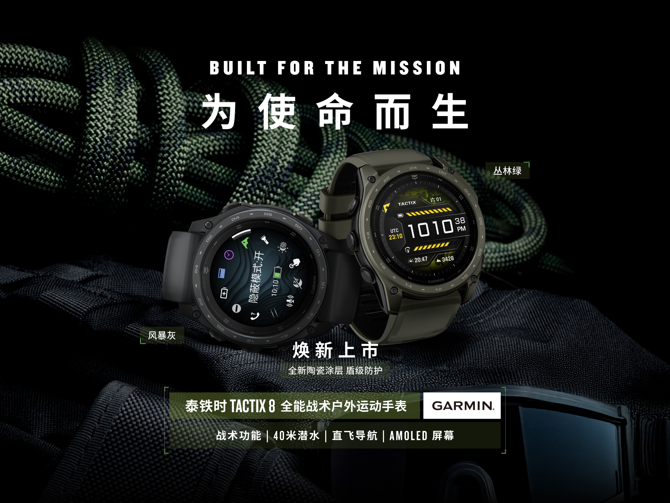 tactix 8 AMOLED 陶瓷涂层版表径为51毫米,提供风暴灰与丛林绿两种颜色供用户选择。