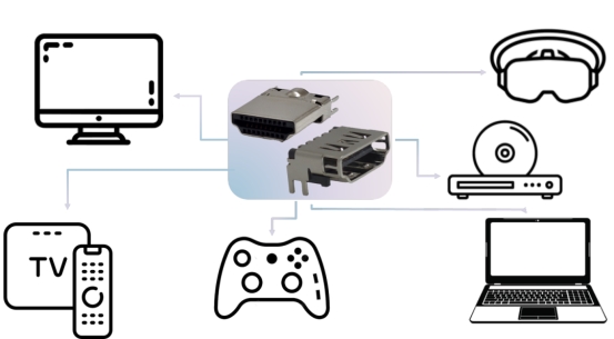 全新HDMI 2.2连接器支持最高96Gbps传输带宽,全面兼容8K@60Hz、12K@120Hz及FRL等先进技术,可广泛应用于高端电视、医疗设备、电竞显示器、AR/VR/XR装置等领域,为客户构建稳定可靠的高清传输平台。