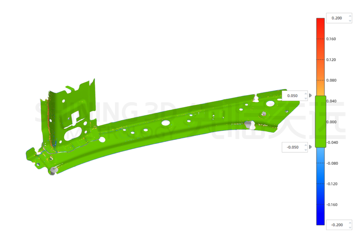 高精度三维扫描技术的普及,为制造企业提供了一种解决检具的高成本痛点的良好途径。高精度三维扫描仪可通过非接触光学扫描三维重建的方式,快速获取、生成钣金件的高精度全尺寸三维模型,并且进行全尺寸检测,钣金孔、边等尺寸、形位公差检测均可覆盖。