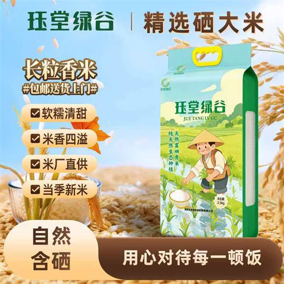 “珏堂绿谷天然富硒贡米,汲取自然精华,凝聚生态匠心。更承载着健春堂对安全与规范的执着追求。米粒饱满,煮饭软糯香滑,米香浓郁回味绵长,是日常膳食中的健康之选。”