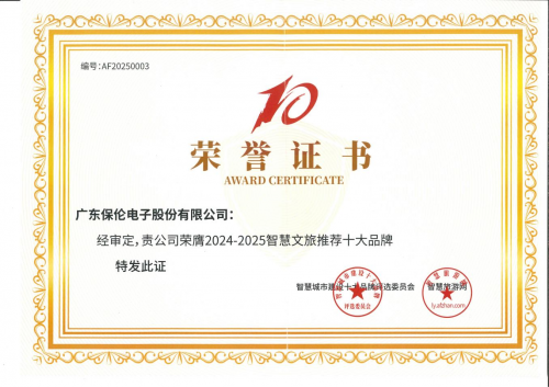 汇聚品牌力量,赋能行业升级。近日,由智慧城市建设十大品牌评选委员会、安防展览网、智慧旅游网、智慧医疗网联合主办的“2024-2025年度智慧城市十大推荐品牌”评选榜单重磅揭晓。其中,广东保伦电子股份有限公司(简称“itc保伦股份”)凭借在智慧文旅领域的深厚积淀与卓越服务,成功斩获“2024-2025年度智慧文旅推荐十大品牌”奖项。