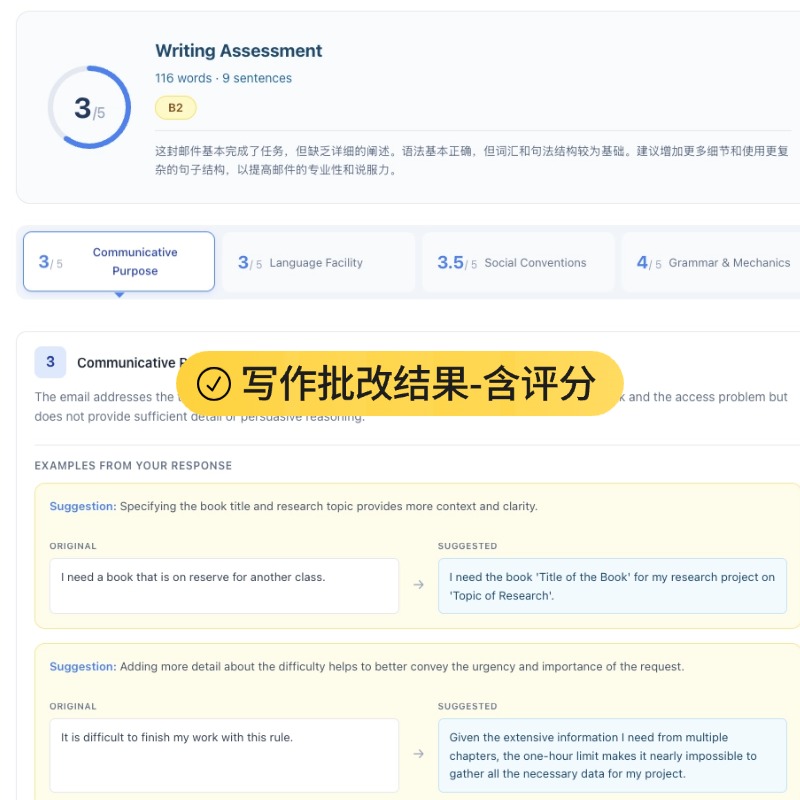 新注册用户可获赠 200 积分,用于口语或写作批改体验。