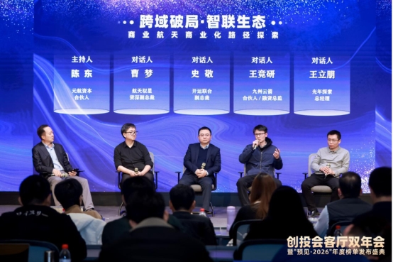 随后,在陈东主持的圆桌对话环节,他与航天驭星资深副总裁曹梦、开运联合副总裁史敬、九州云箭合伙人王竞研、光年探索总经理王立朋就商业航天技术突破、产业链协同以及投资机会进行了务实讨论。