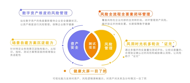 针对上述普遍存在的痛点,永信至诚基于「数字风洞」数字健康管理平台提供了一套完整的解决方案,帮助企业将安全管理模式从被动响应调整为以资产和风险为核心的主动管理。