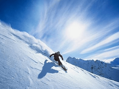 滑雪者疾驰在雪山间