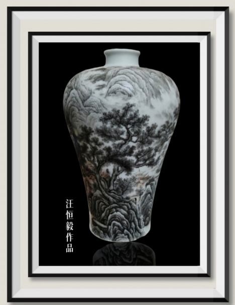 这首诗紧扣瓷瓶的材质、墨彩山水的画面,以及“梅瓶”的器型特点,既点出了汪恒毅作品的艺术特色,也呼应了画面中山林隐逸的意境。