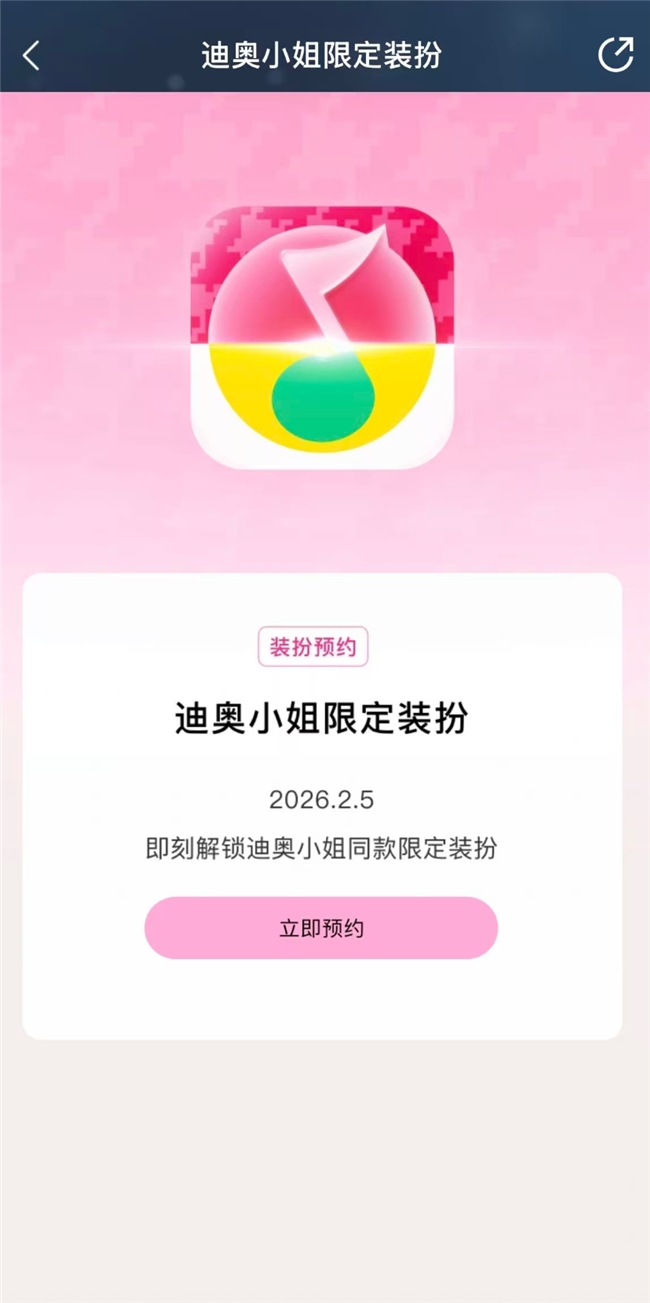 “迪奥小姐”诞生之初就是一款“充满爱意的香氛”,其代表性的透明玻璃瓶身搭配淡粉色液体,缀以千鸟格图案与蝴蝶结,极尽甜美与浪漫。从预约活动透露的APP图标来看,QQ音乐“迪奥小姐限定装扮”则完美融合了迪奥小姐的代表性元素,实现了奢侈品美学与高频音乐场景的深度融合。