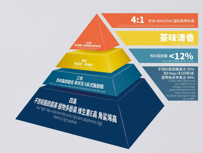 山茶油又称油茶籽油,是我国特有的木本植物油,花果同枝,有“抱子怀胎”的俗称,拥有2300多年食用历史,早在《山海经》中就有记载,曾是明清皇家御膳用油。它取自油茶籽,全球90%以上的产量来自中国。