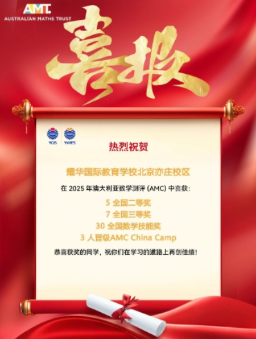 本学年,我校数学竞赛成果亮眼——澳大利亚AMC数学测评中,42人斩获全国奖项,3人成功晋级中国营,跻身全国优秀行列;