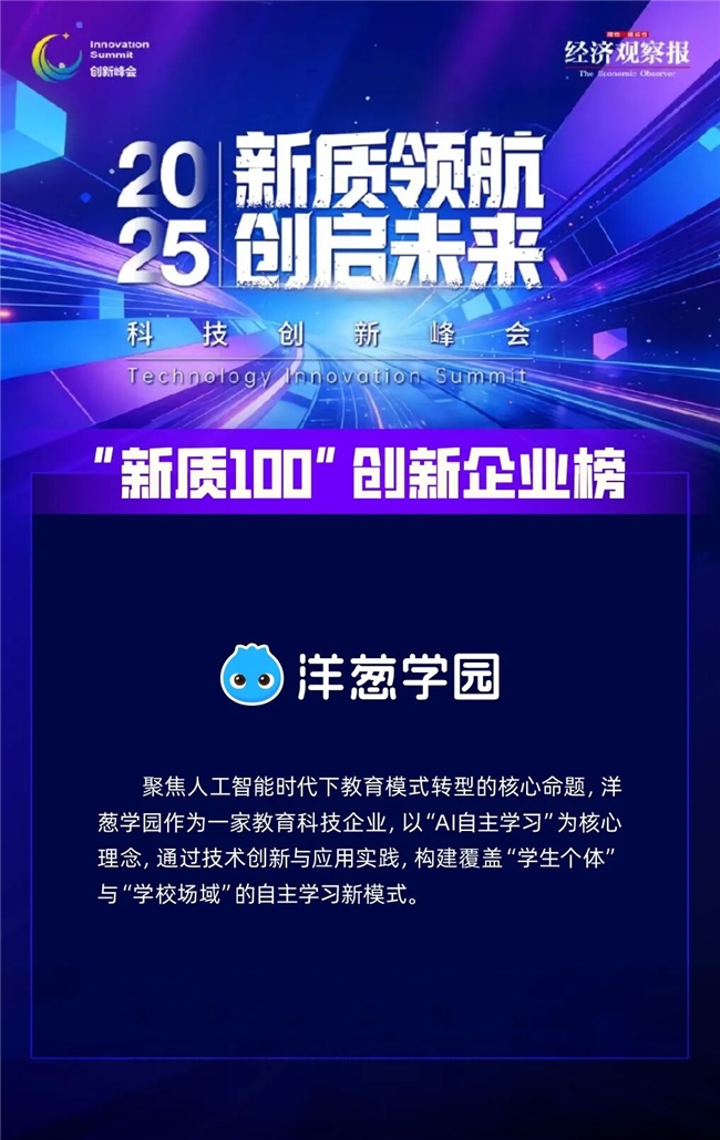 此次“新质100”榜单的发布,不仅是对创新企业的肯定,也是对产业趋势的预演。洋葱学园的入围,实质上是教育产业在“人工智能+”时代的一次深远回响:真正的“新质”不应仅停留于技术参数的堆砌,而应归结于对“人”的潜能的深层唤醒。