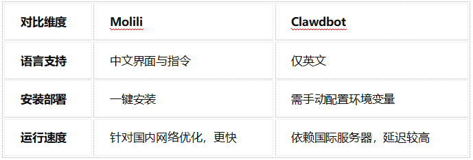 Molili vs Clawdbot:本土化改造直击用户痛点