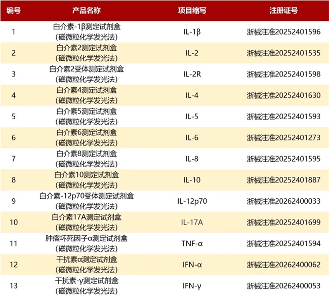 随着细胞因子13项的加入,JC化学发光平台检测菜单进一步扩容,形成了覆盖心脑血管、血栓、炎症及器官损伤、细胞因子、阿尔兹海默症等多领域产品矩阵。这不仅强化了平台的综合竞争力,也为打造“一管血、全项目”快速检测解决方案奠定了坚实基础。